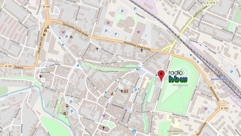 Unser Funkhaus befindet sich im Herzen Ascherslebens direkt am Herrenbreitepark in unmittelbarer Nähe zur Innenstadt und ist mit öffentlichen Verkehrsmitteln bestens zu erreichen.